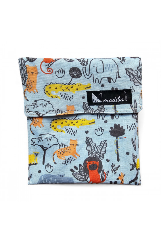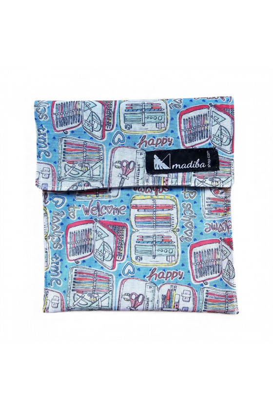 Porta-entrepans reutilitzable de tela amb interior plàstic alimentari, ideal per a portar entrepans sense generar residus. Estampat divertit!.