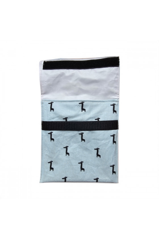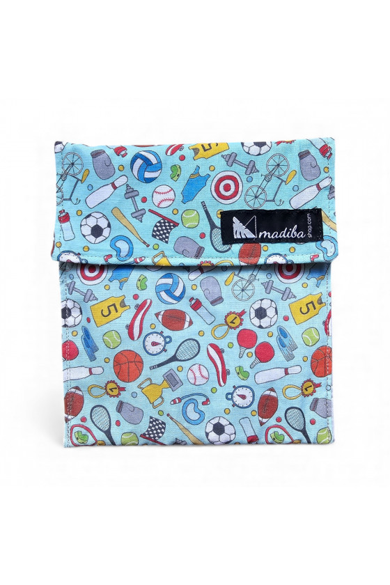 Porte-sandwich réutilisable en tissu avec intérieur en plastique alimentaire, idéal pour transporter des sandwichs sans générer de déchets. Imprimé amusant !